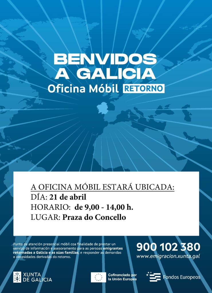 A OFICINA MÓBIL ESTARÁ UBICADA:DÍA: 21 de abrilHORARIO: de 9,00 - 14,00 h.LUGAR: Praza do Concello...