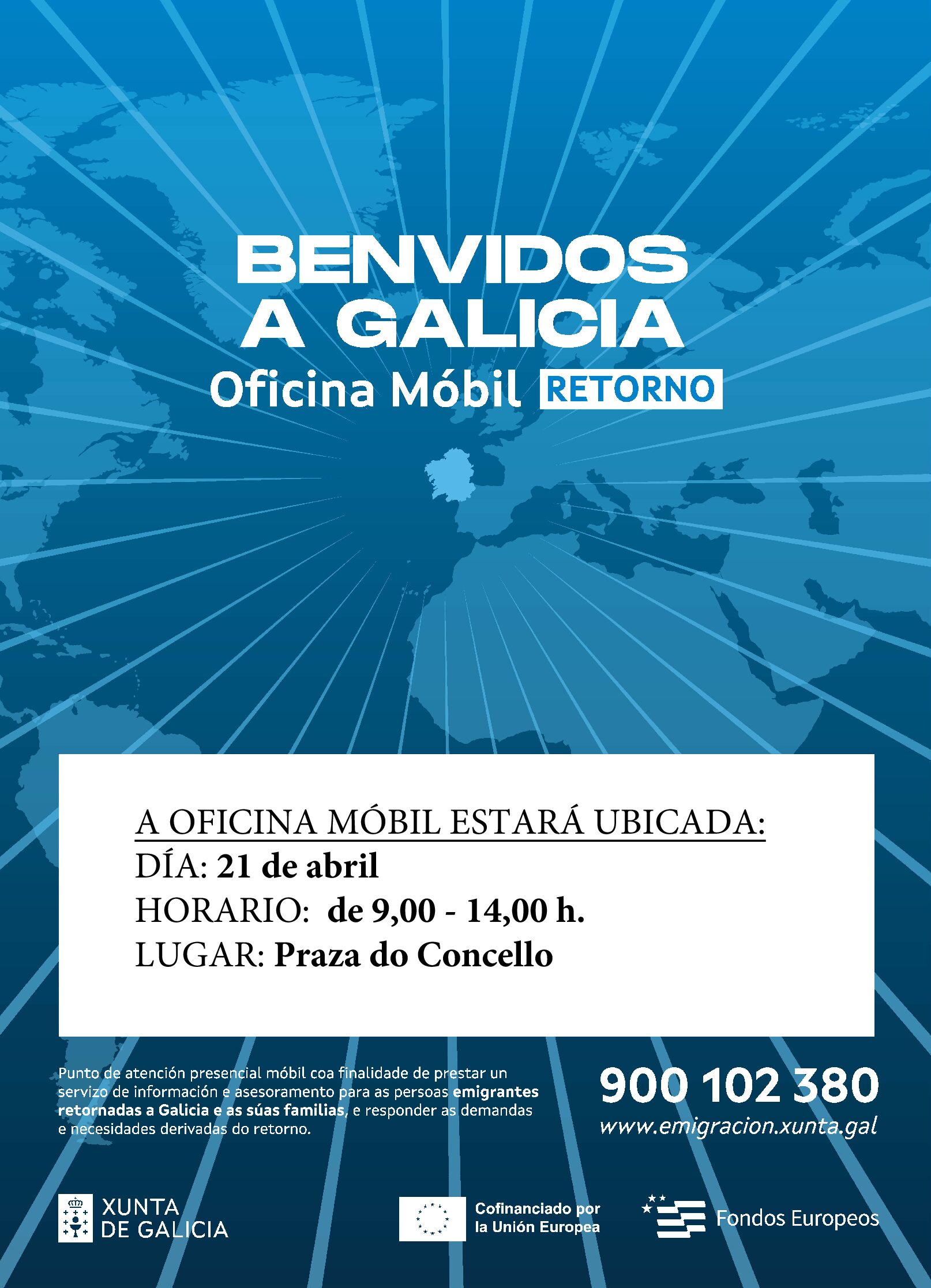 “OFICINA MÓBIL DE ATENCIÓN ÁS PERSOAS EMIGRANTES RETORNADAS” Abr 6, 2026 | Actualidade A OFICINA MÓBIL ESTARÁ UBICADA:DÍA: 21 de abrilHORARIO: de 9,00 – 14,00 h.LUGAR: Praza do Concello 20260306_DIPTICO-15X15cm_SXE_2025_Dixital-1Descarga